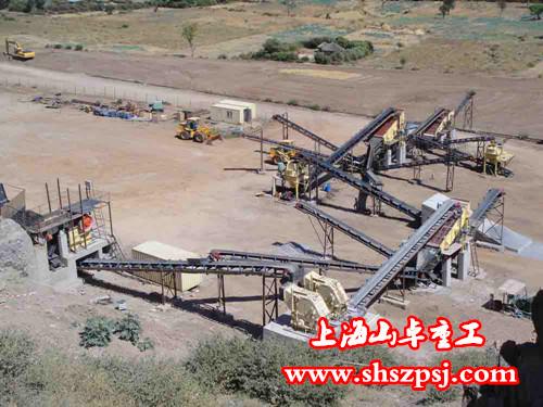 環保型河卵石制砂機生產線生產工藝,上海山卓重工制砂機技術說天然礦物質經過由振動給料機均勻送至顎式破碎機內進行粗破,然后產生的粗料再由膠帶輸送機送入圓錐破碎機內進行細破,隨后將產生的細料由輸送機送至振動篩進行篩選,不滿足環保型河卵石制砂機進料粒度的被返回圓錐破碎機繼續破碎,滿足環保型河卵石制砂機進料粒度的物料被送入環保型河卵石制砂機進行破碎,破碎后的物料被送至振動篩進行篩選,粒度大小不滿足要求的物料被返回環保型河卵石制砂機繼續破碎,滿足要求的物料被送至洗砂機進行清洗,清洗后的物料由輸送機送至成品堆,上海山卓重工制砂設備生產線。